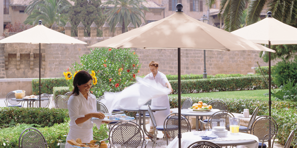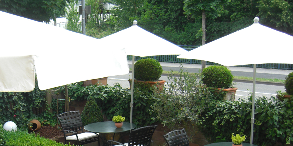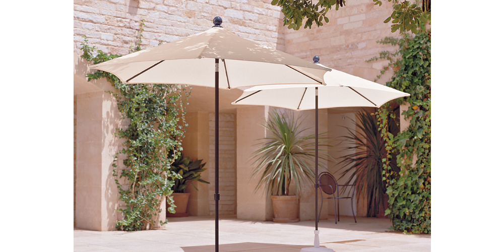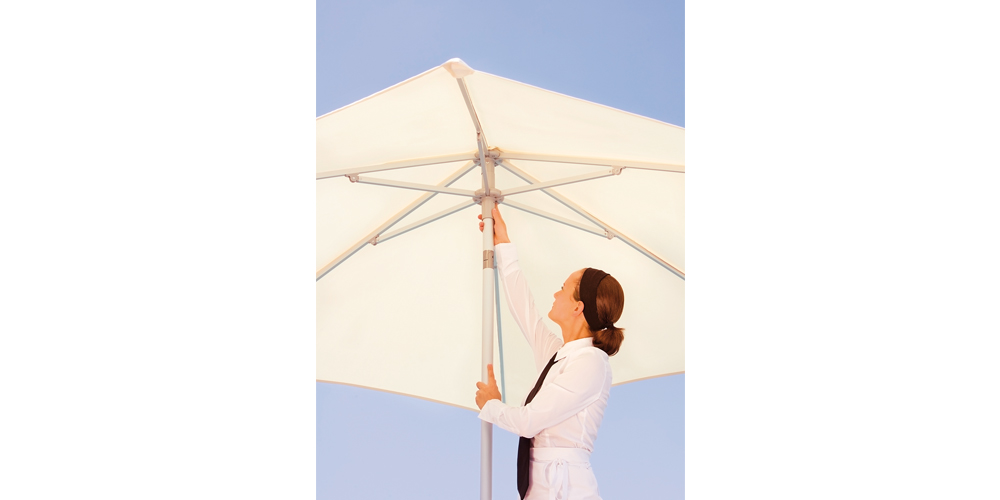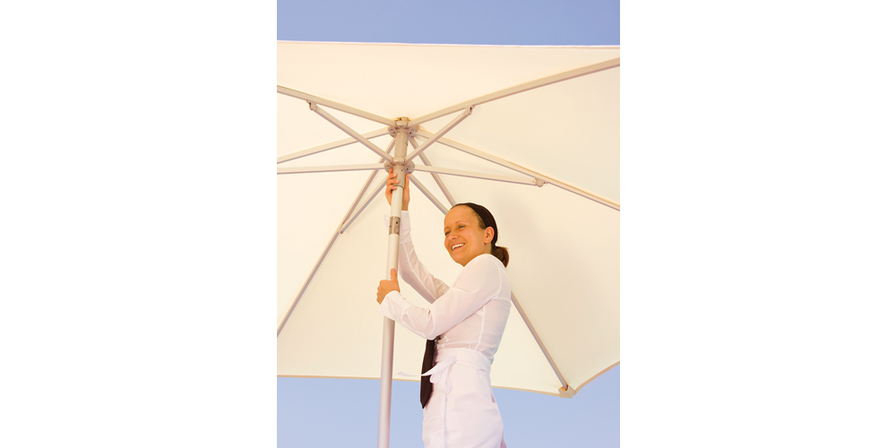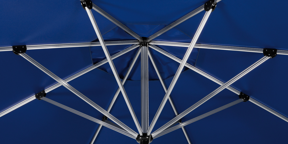Alu-Stock 38 mm Ø eloxiert, Bezug 100 % Polyester, ohne Volant, Schirmmaß 270 cm Ø