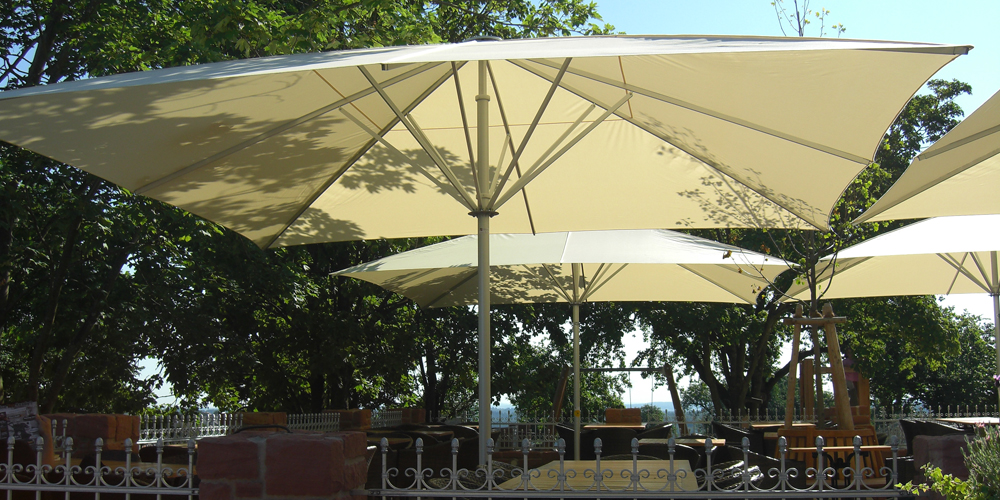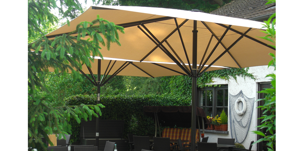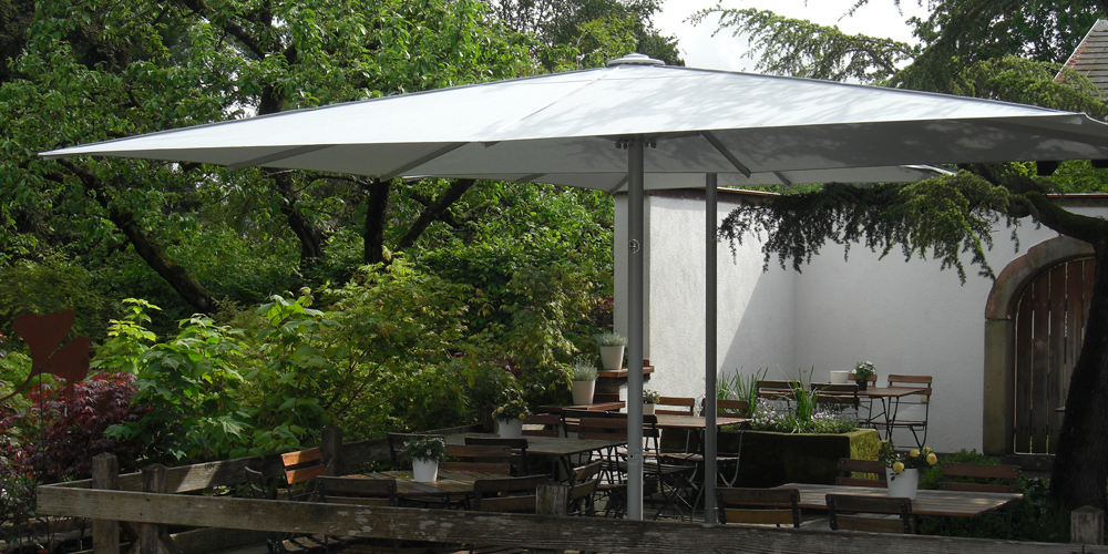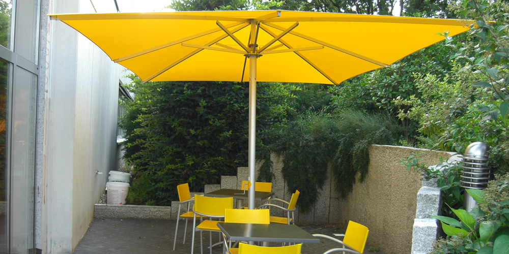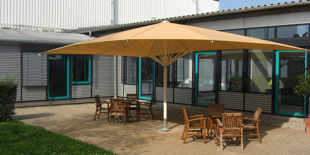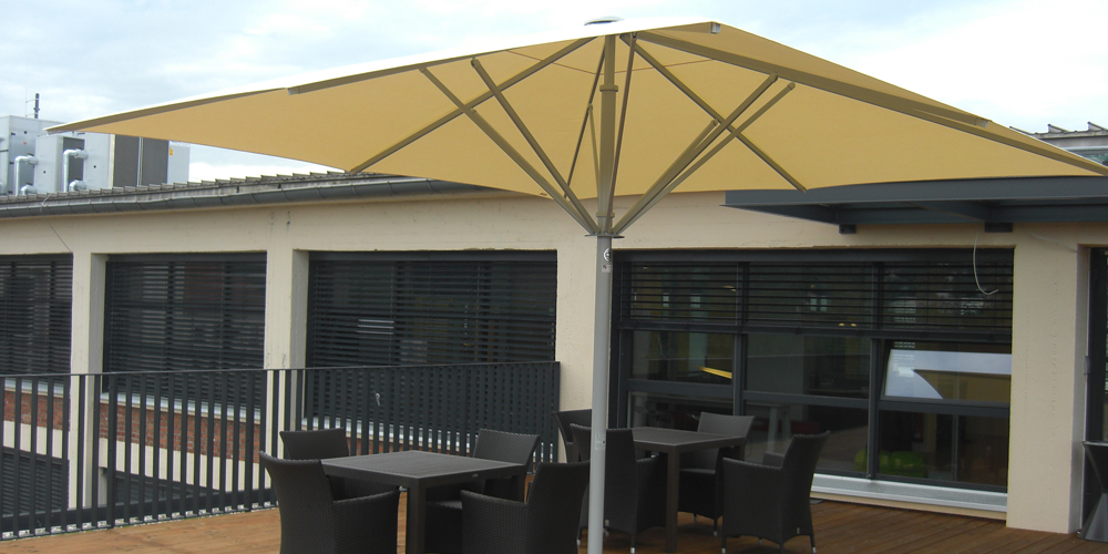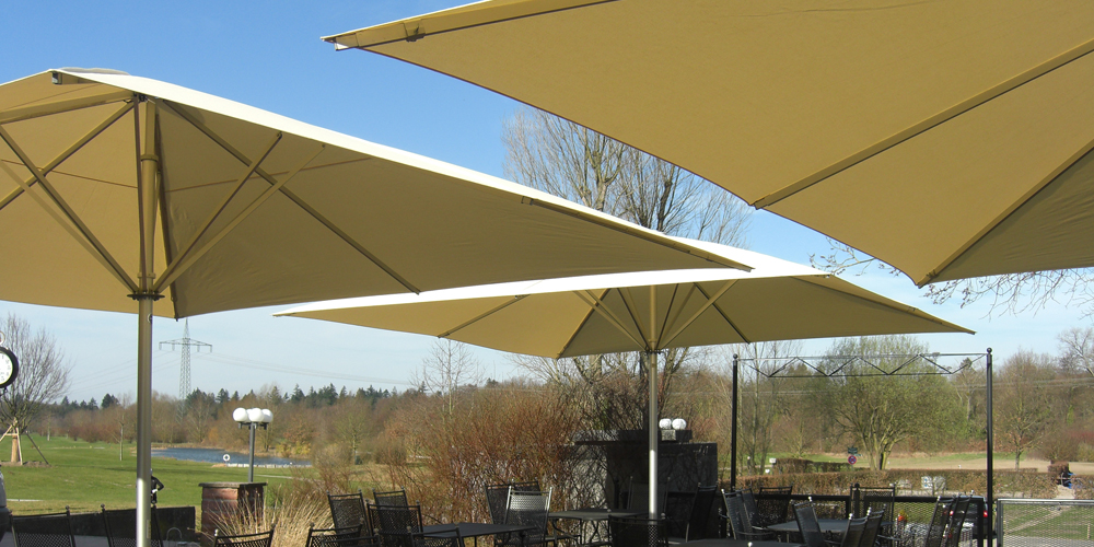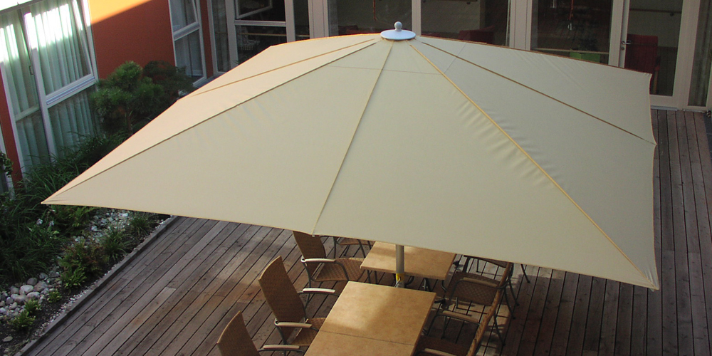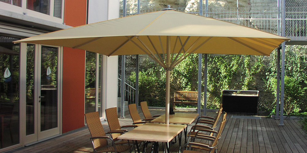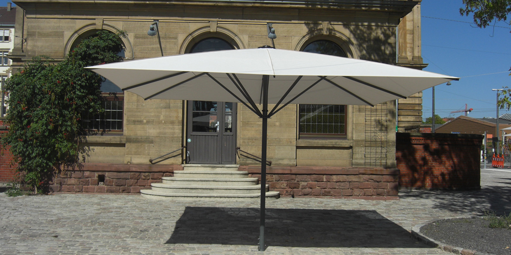 Alu-Schirmstock 76 mm Ø farbig beschichtet, mit abnehmbarer V2A-Handkurbel, Bezug aus Zeltwandstoff Airtex, ohne Volant, acrylat-beschichtet und wasserbeständig, Schirmmaß 500x500 cm