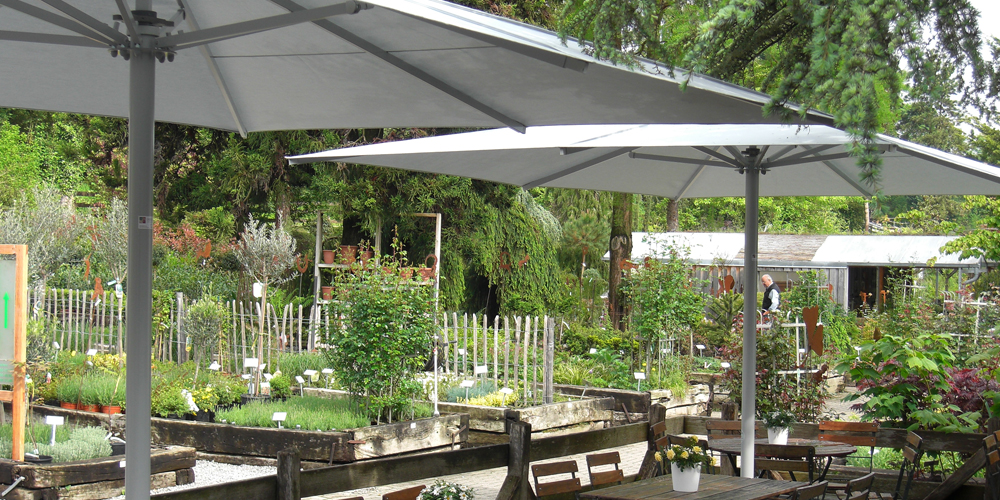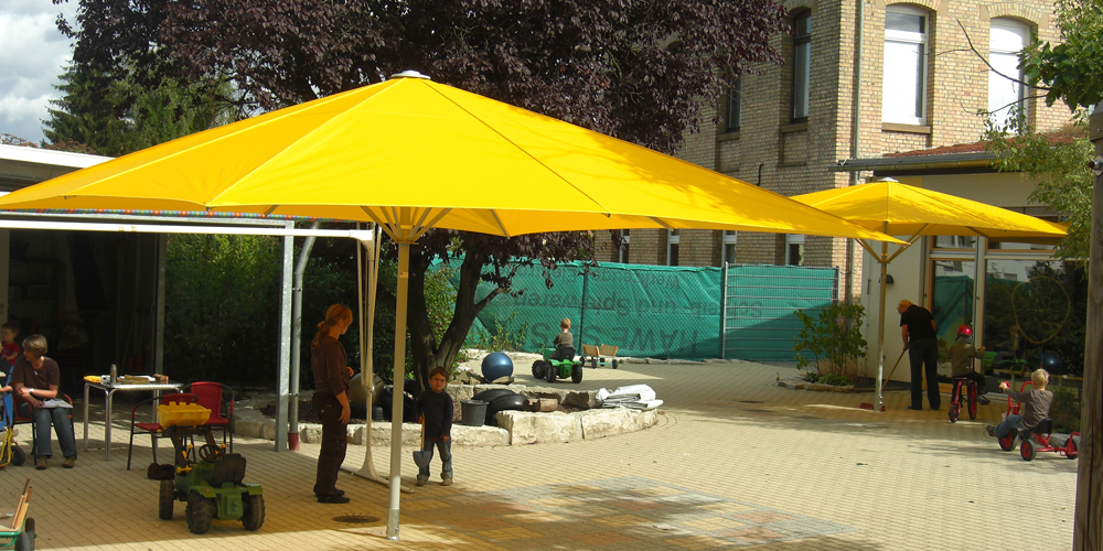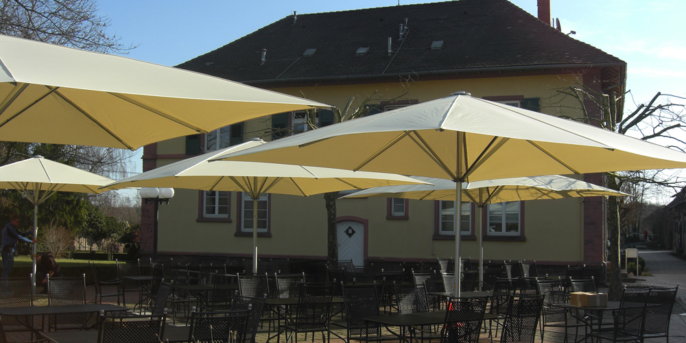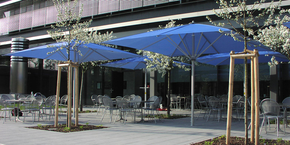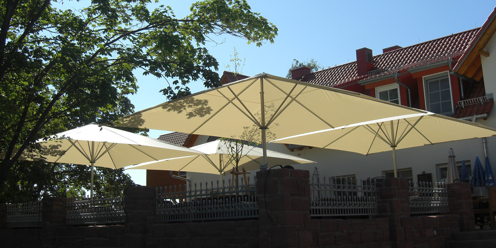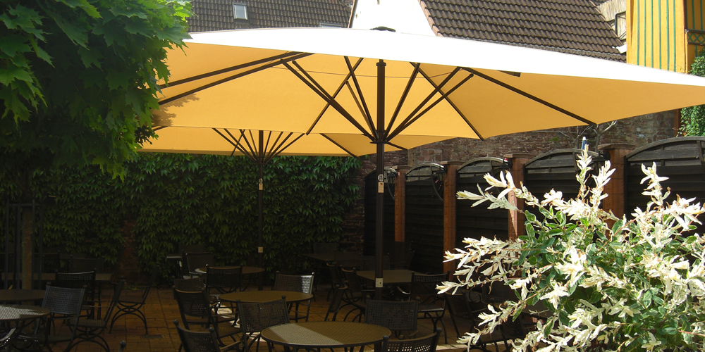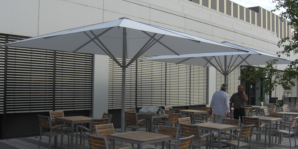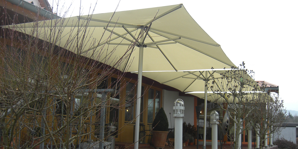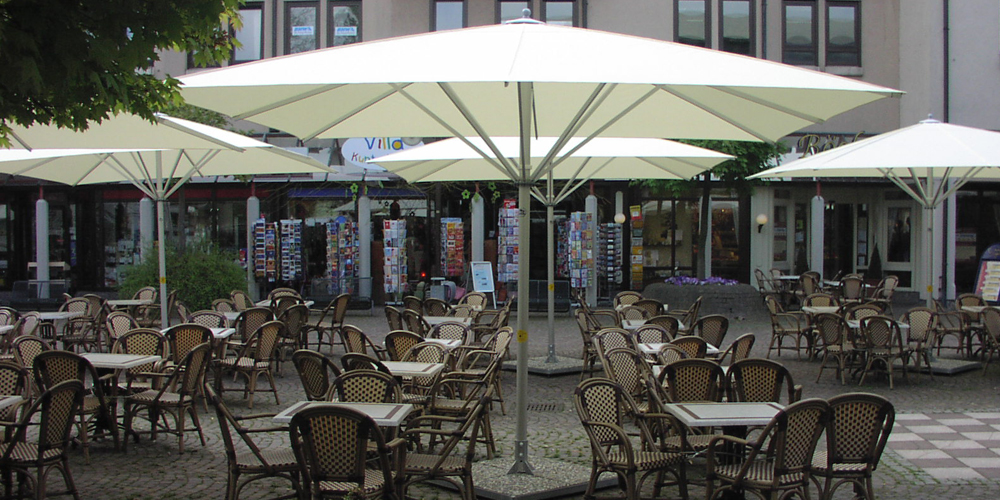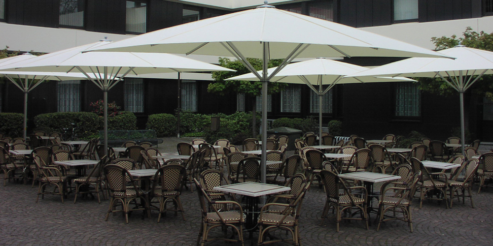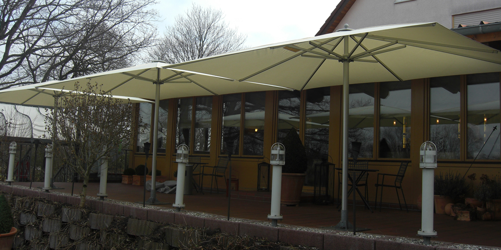 Alu-Schirmstock 76 mm Ø farbig beschichtet, mit abnehmbarer V2A-Handkurbel, Bezug aus Zeltwandstoff Airtex, ohne Volant, acrylat-beschichtet und wasserbeständig, Schirmmaß 500x500 cm