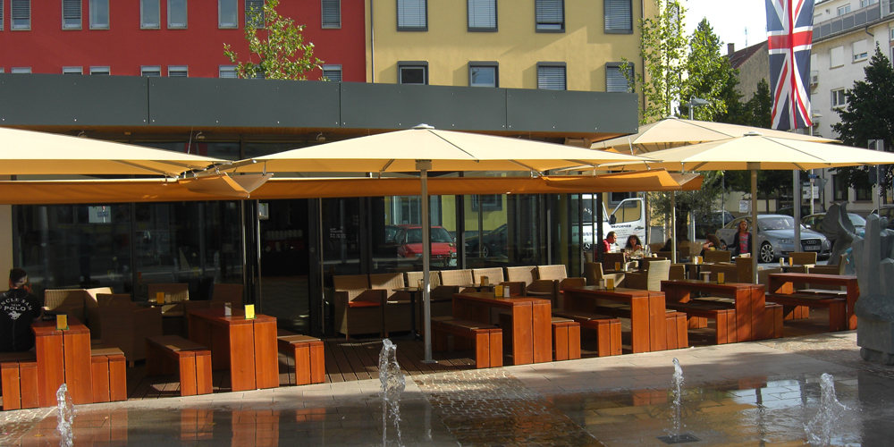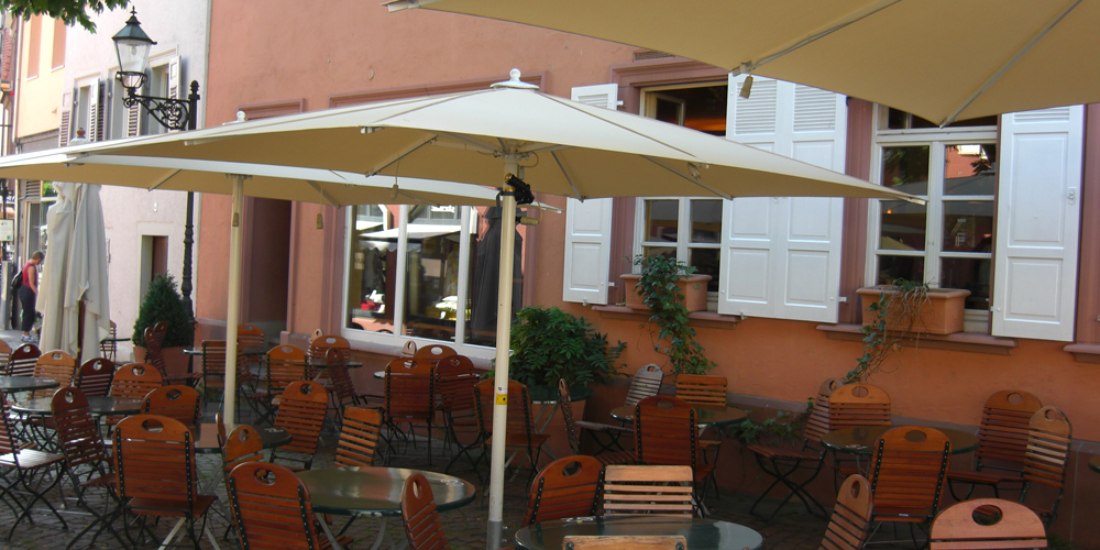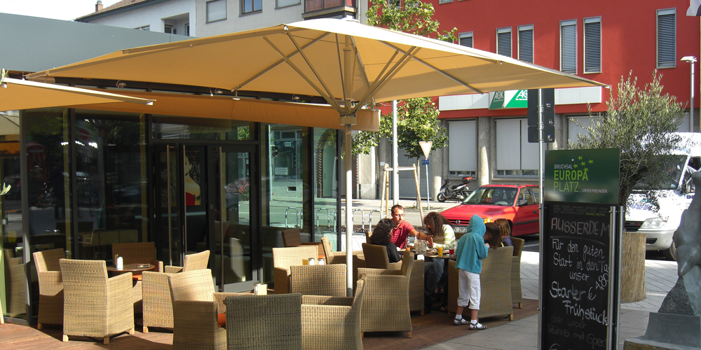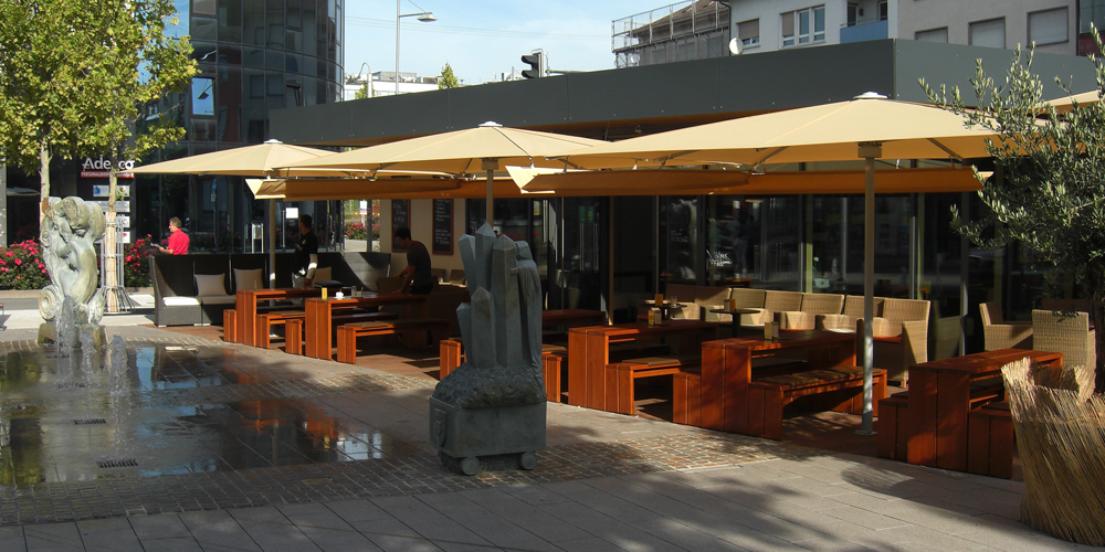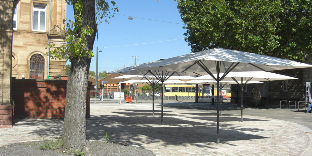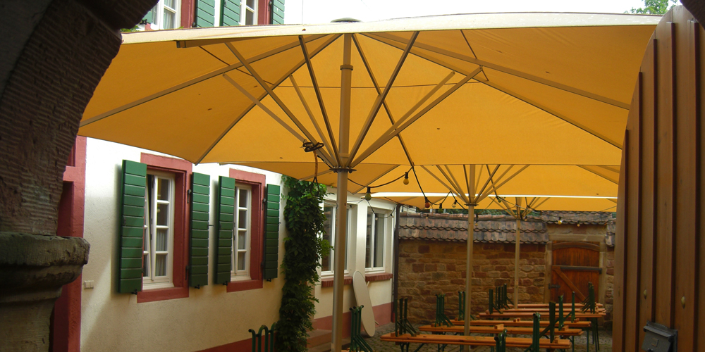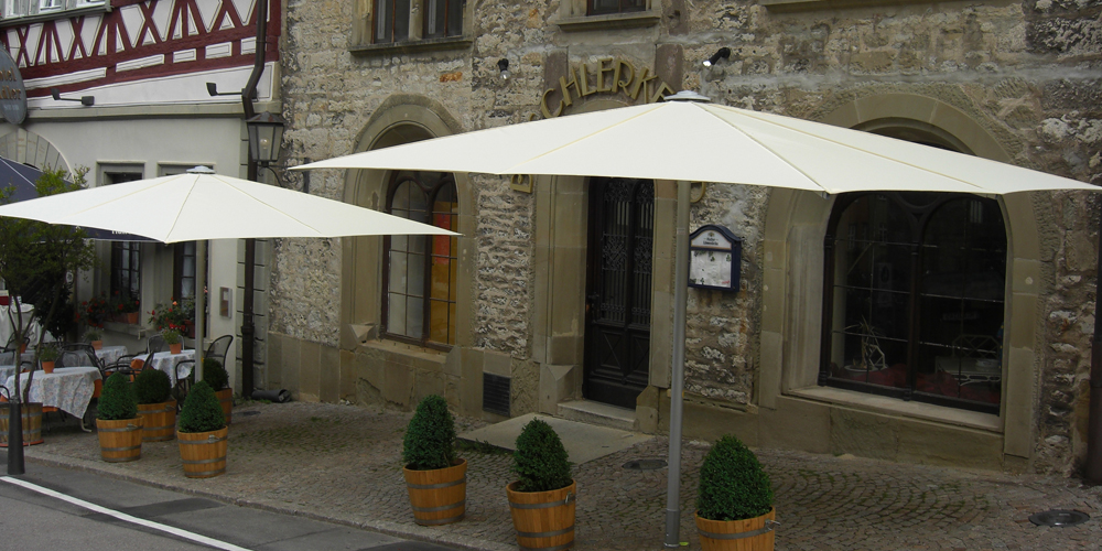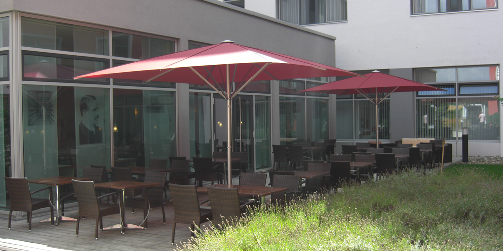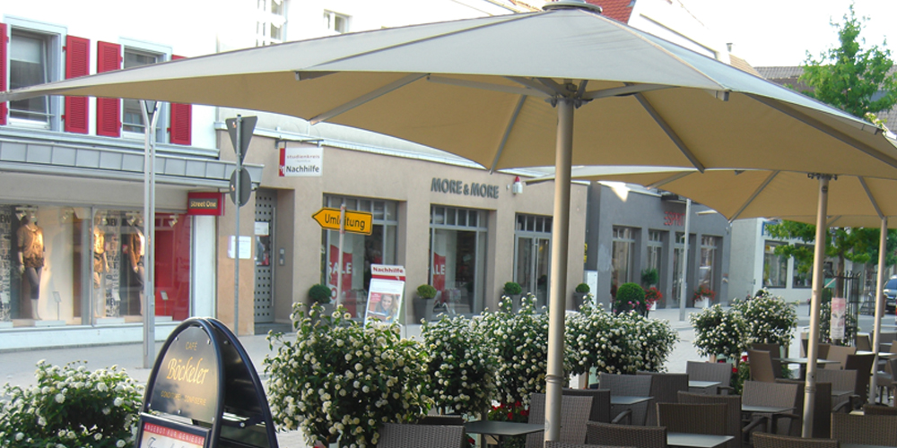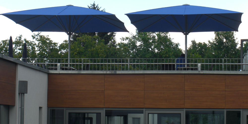 Alu-Schirmstock 76 mm Ø farbig beschichtet, mit abnehmbarer V2A-Handkurbel, Bezug aus Zeltwandstoff Airtex, ohne Volant, acrylat-beschichtet und wasserbeständig, Schirmmaß 500x500 cm
