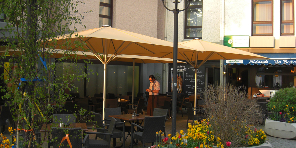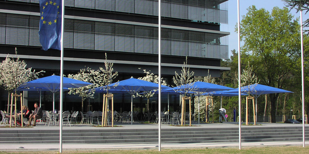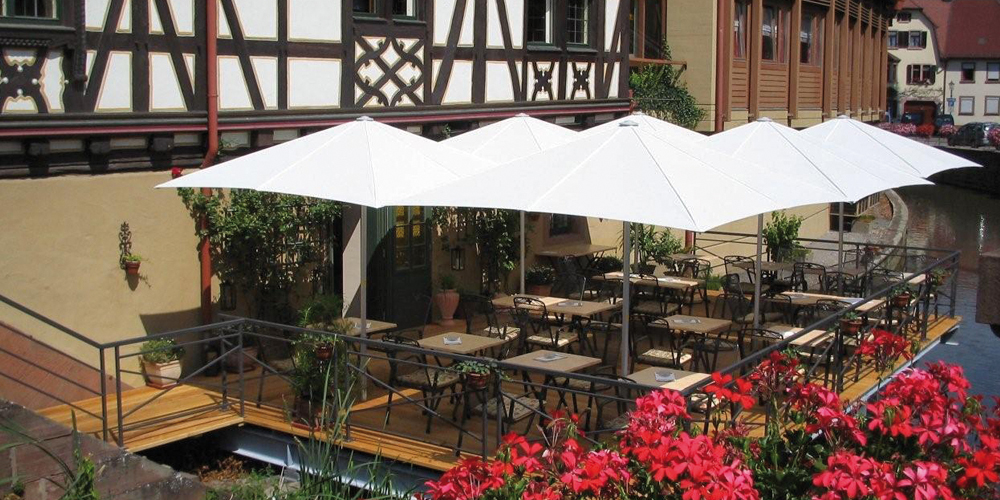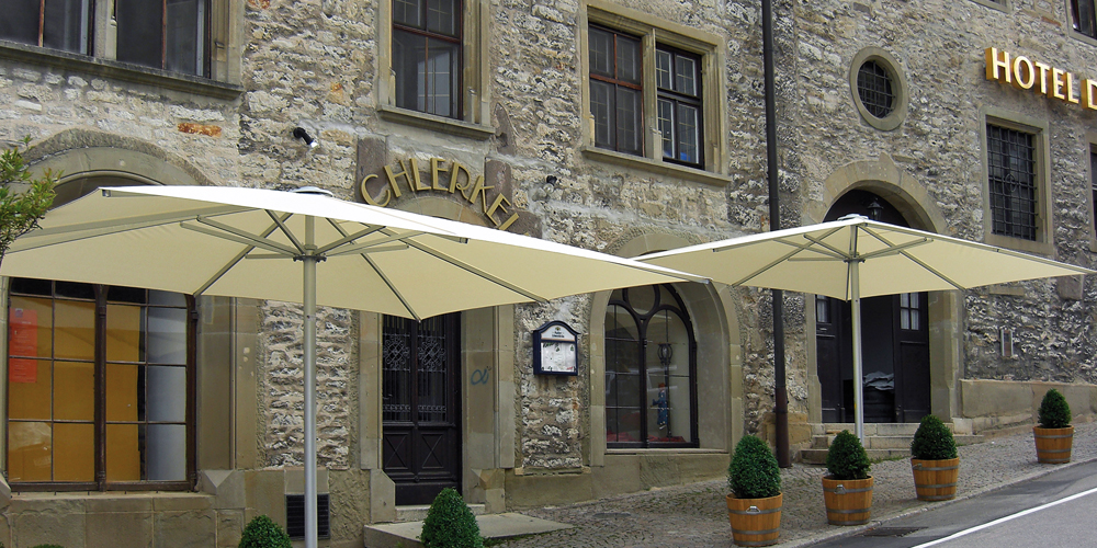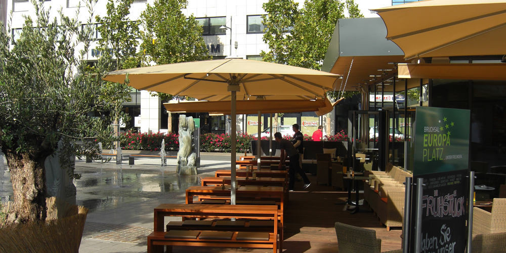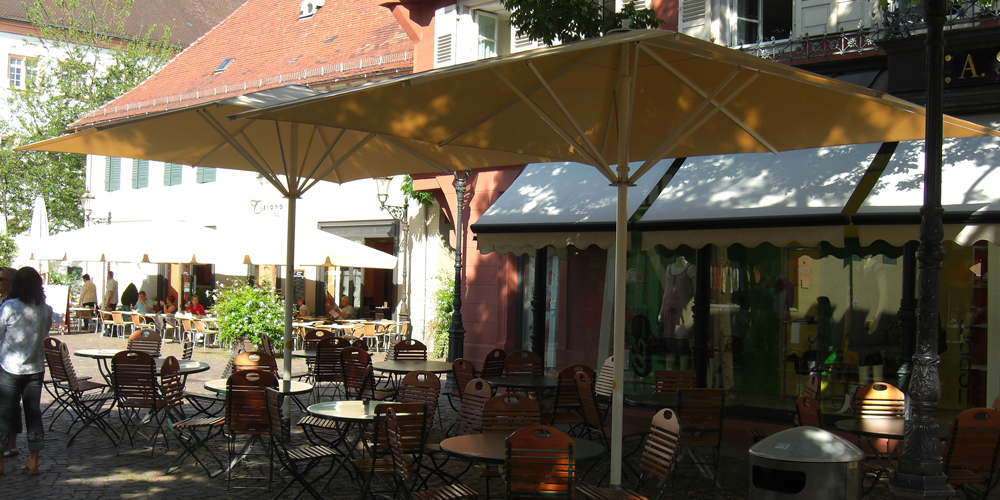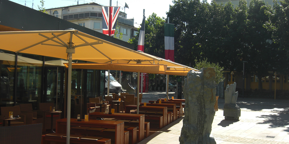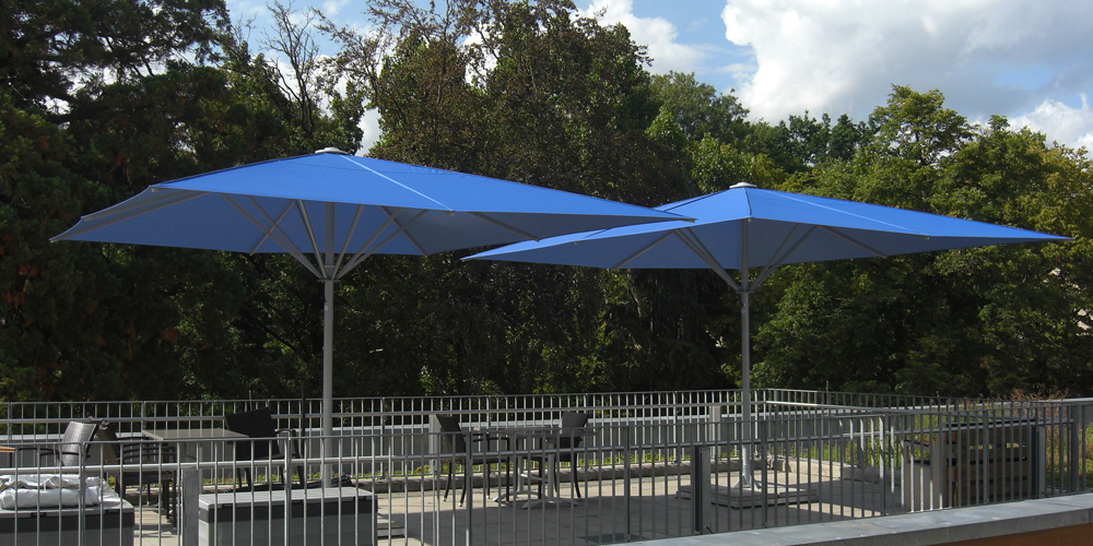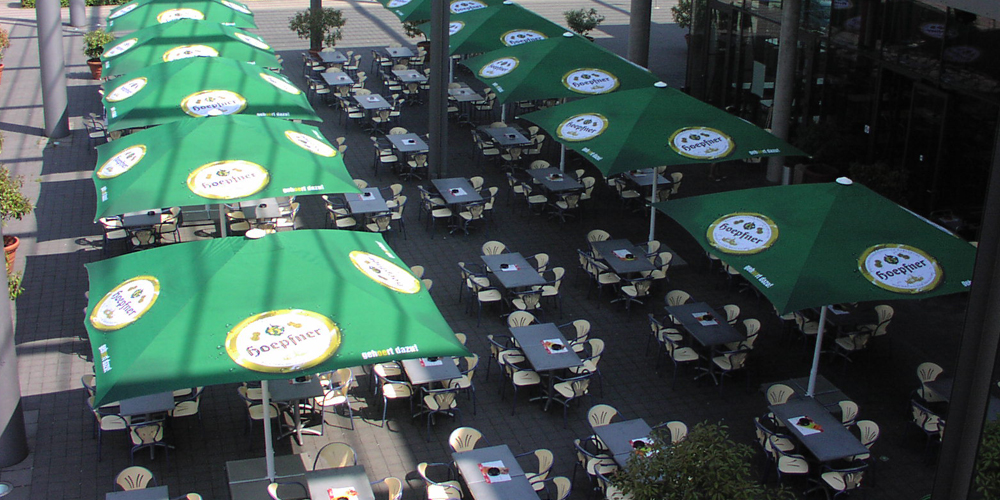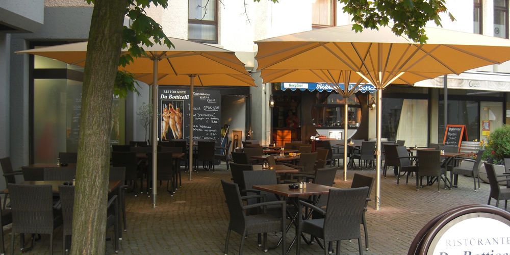 Alu-Schirmstock 76 mm Ø farbig beschichtet, mit abnehmbarer V2A-Handkurbel, Bezug aus Zeltwandstoff Airtex, ohne Volant, acrylat-beschichtet und wasserbeständig, Schirmmaß 500x500 cm