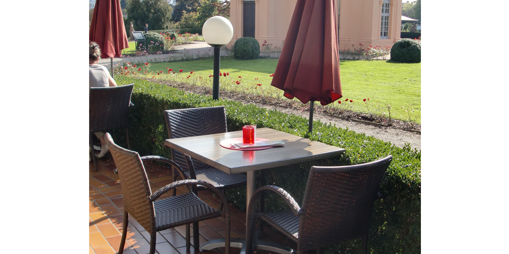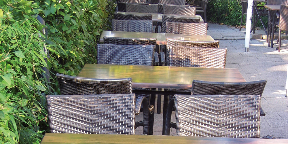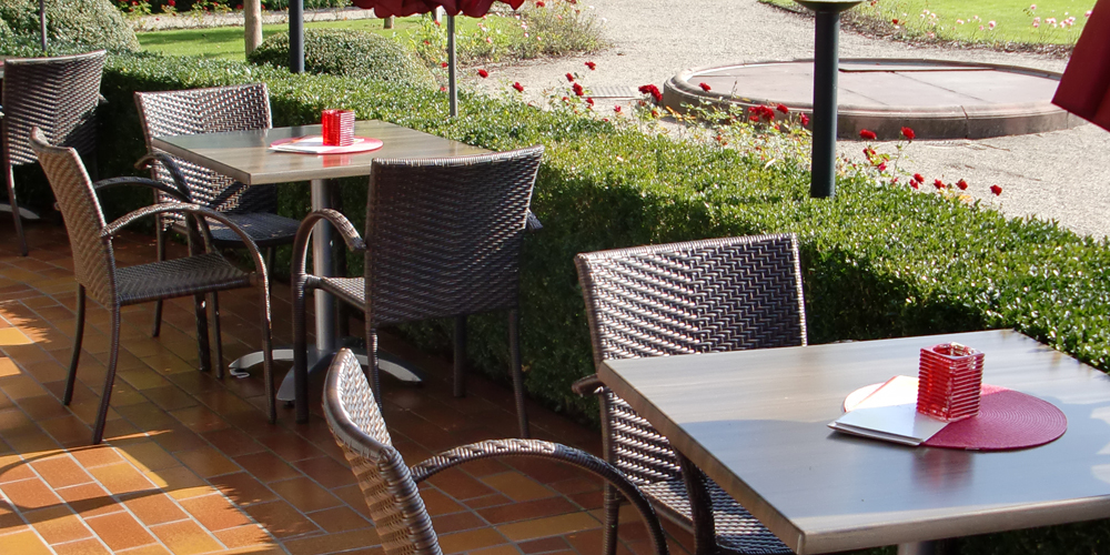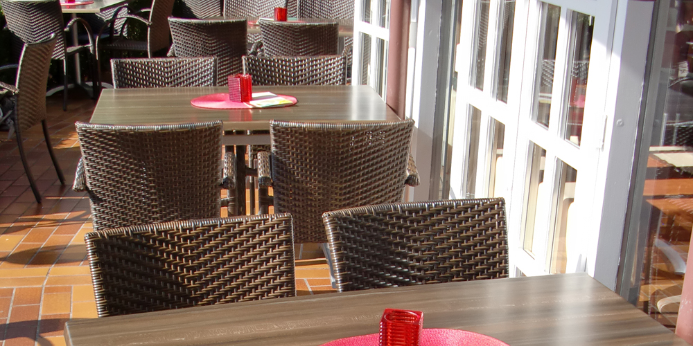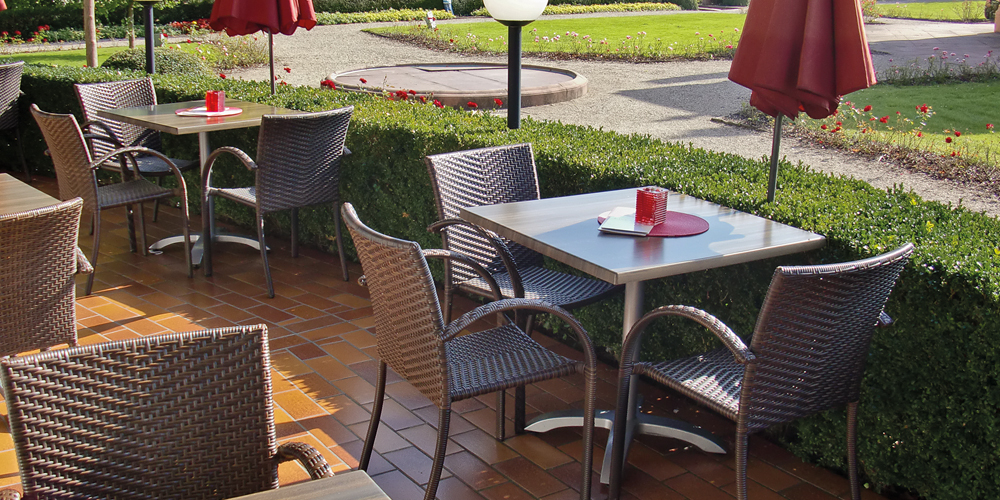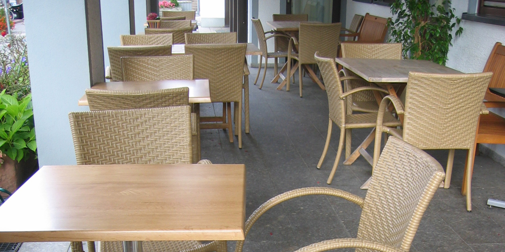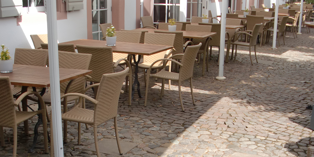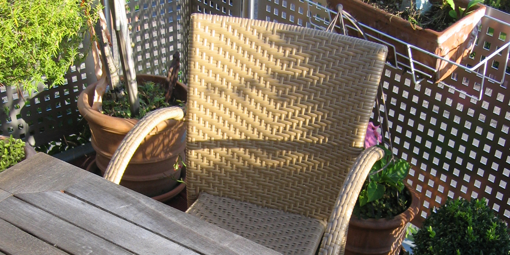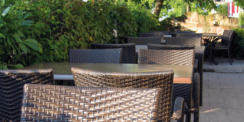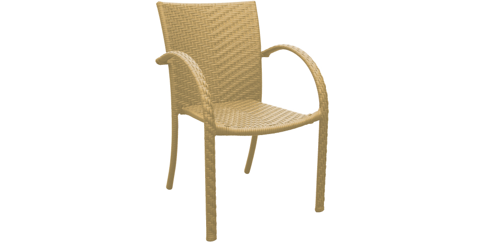 attraktiver Flechtsessel, voll umflochten mit flachem PE-Markengeflecht, sehr bequem, stapelbar