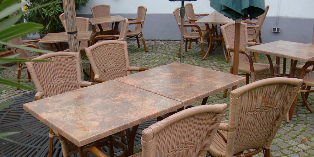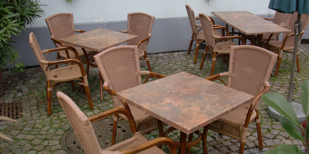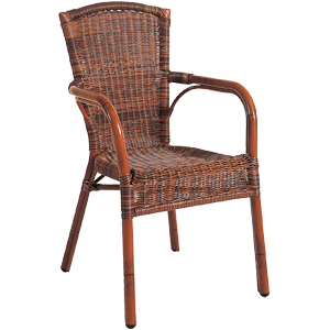 vielseitiger Rattan-Alu-Sessel, Alu-Gestell bambusfarbig beschichtet, rundes Xiloprofil-Geflecht mit Stahlkern in Sitz und Rücken, sehr bequem, absolut wetterfest, stapelbar